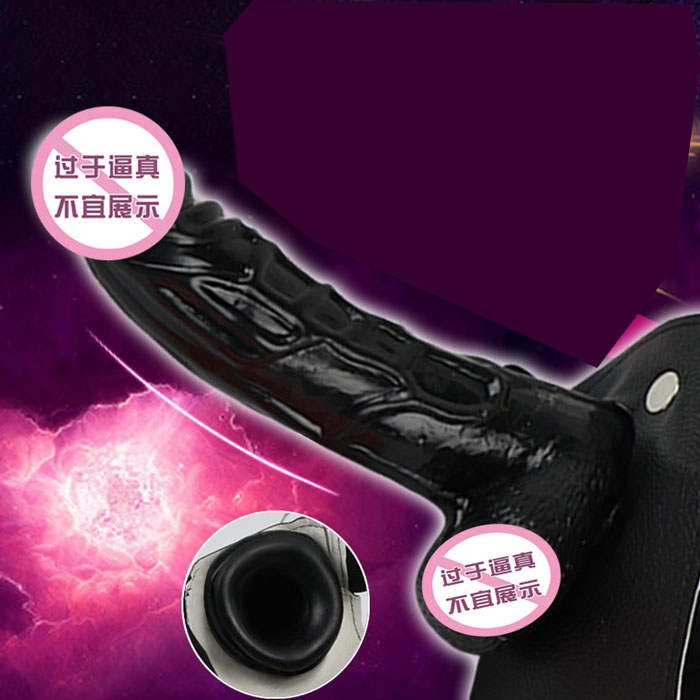 Dương vật có quai đeo rỗng ruột màu đen có kích thước tương đối to hơn bình thường một chút bởi còn có phần rỗng ruột để sản phẩm có thể chưa được dương vật đàn ông phía bên trong, vỏ bọc dày hơn các bao cao su đôn dên nhiều để khi sử dụng không bị quẹo khi dương vật bên trong xìu.